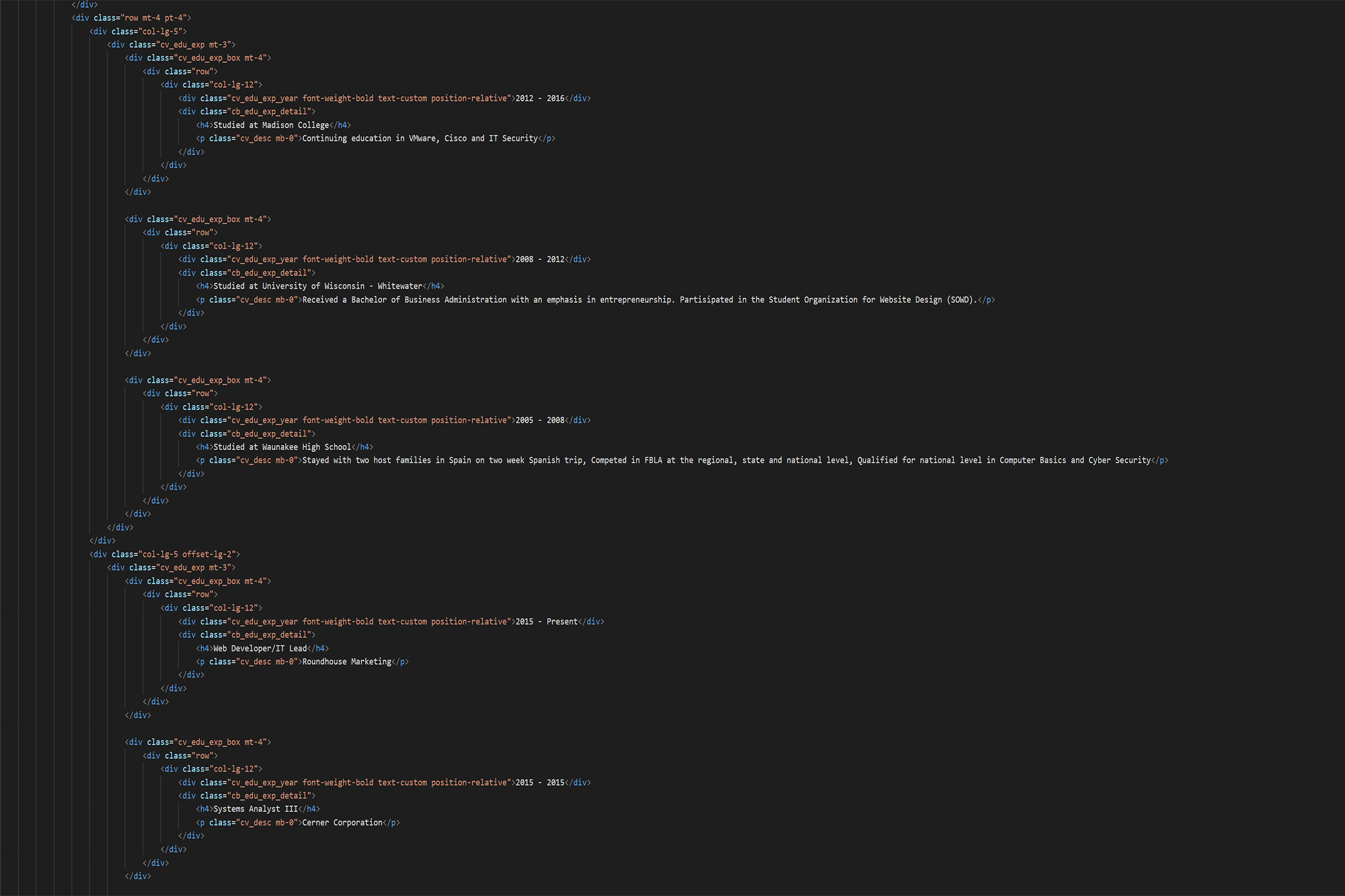 I am a graduate of University of Wisconsin - Whitewater where I received a Bachelor of Business Administration degree with an emphasis in entrepreneurship. I am the owner of a small website design and hosting company called Meffert Web Hosting LLC, hosting websites for various organizations and businesses stretching as far as Brazil. I have vast experience in servers, networking, hardware, software, server virtualization, and AWS cloud computing. I leverage AI-powered development tools like Claude Code to accelerate development workflows. My breadth of programming languages includes HTML, CSS, SQL, PHP, Python, and VB.NET. I have been working as a Web Developer/IT Lead at Roundhouse for over a decade.